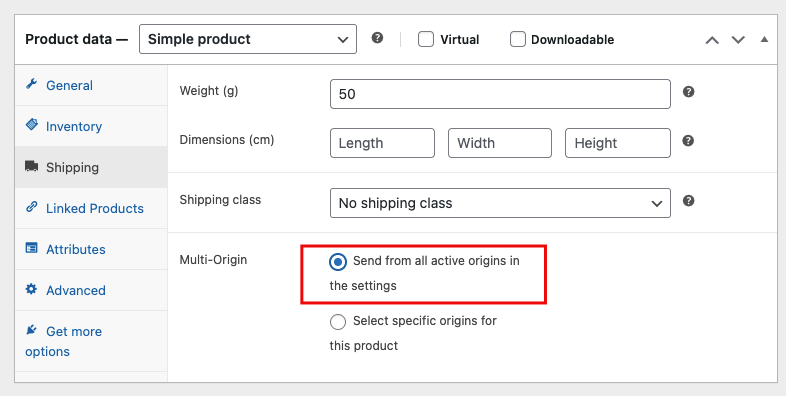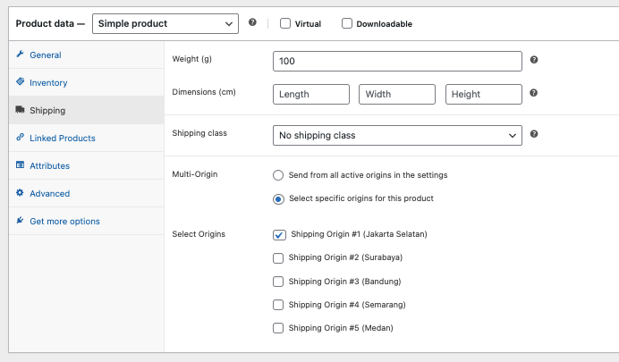Selanjutnya untuk setting MultiOrigin di tiap produknya kita pilih “Send from all active origin in the settings” . Pembeli bebas memilih barang tanpa ragu dan tinggal memilih asal pengiriman di halaman checkout nantinya.