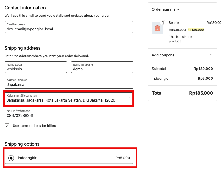 Dan ini hasilnya ketika kita langsung tujuan pengiriman ke jagakarsa.. tarif ongkir langsung pakai custom yang kita buat
