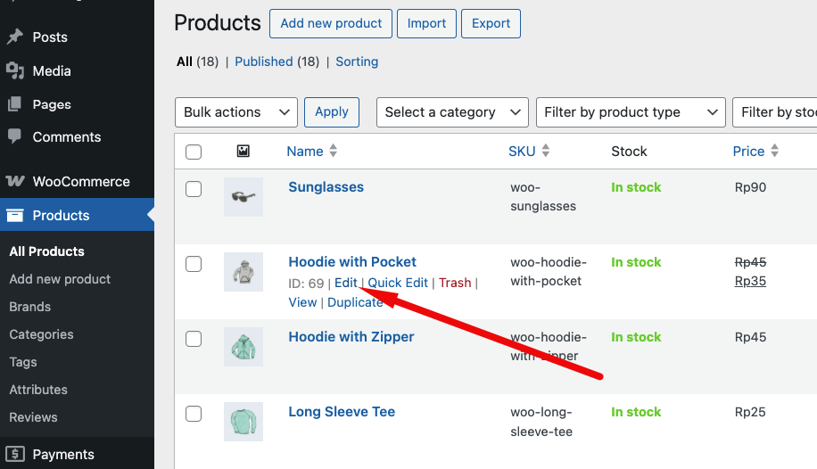Kita bisa mengakses pengaturan tiap produk kita dari Dashboard — Product — All Product dan kita bisa memilih produk mana yang kita edit pengaturan beratnya.