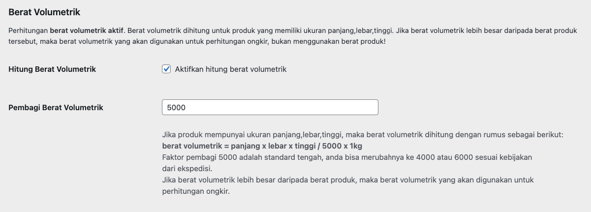 Kita juga bisa mengatur berat volumetrik jika produk kita butuh packing yang cukup besar. Kita bisa mengaktifkannya di pengaturan general IndoOngkir.