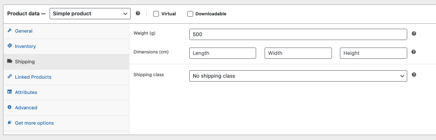 Pada Setting / Pengaturan tiap produk, kita bisa ke menu shipping. disana kita bisa mengisi berat setiap produk.. misal kita kasih 500 gram. kita memakai standart gram ya. karena kalau kg banyak yang bingung masalah titik dan koma.