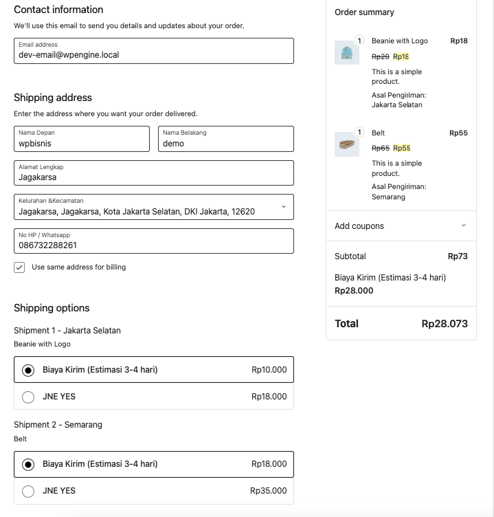 Untuk contoh kita akan membuat pesanan seperti diatas.. dimana 2 produk dengan 1produk di kirim dari Jakarta Selatan dan 1 produk dikirim dari Semarang.