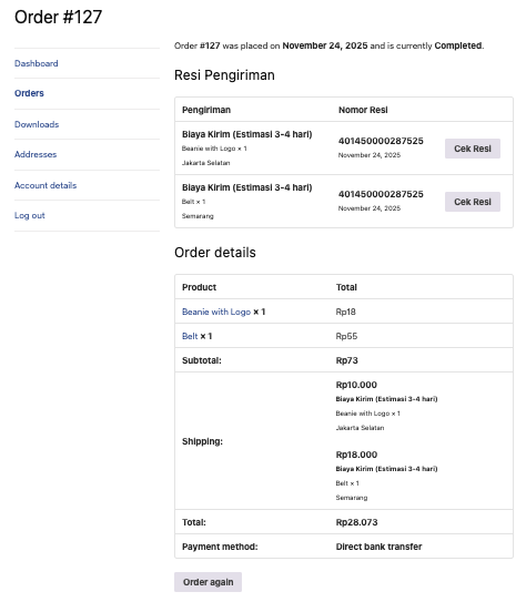 Pembeli nantinya bisa mengakses pesanan mereka di My Account — Orders