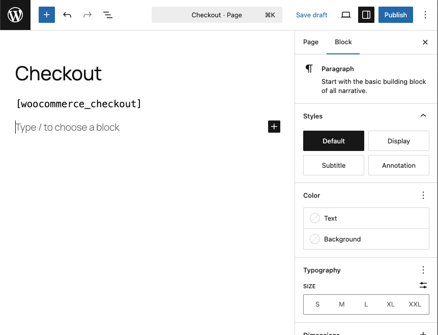 Begitu pula untuk membuat halaman checkout. kita bisa langsung Add New Page dan atur judul dan isi editornya dengan shorttcode nya “[woocommerce_checkout]" . Dan klik Publish